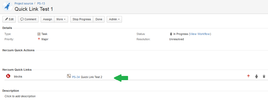 2 | The linked issue will be displayed in the Herzum Quick Links panel. | Herzum Quick Links panel |