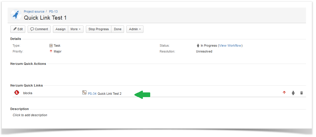 The linked issue will be displayed in the Herzum Quick Links panel.