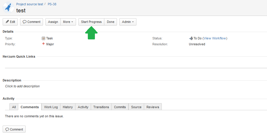 1 | Click on the button for the workflow Transition configured to execute the Escalate Issue post function. | Button for workflow transition in issue view screen |