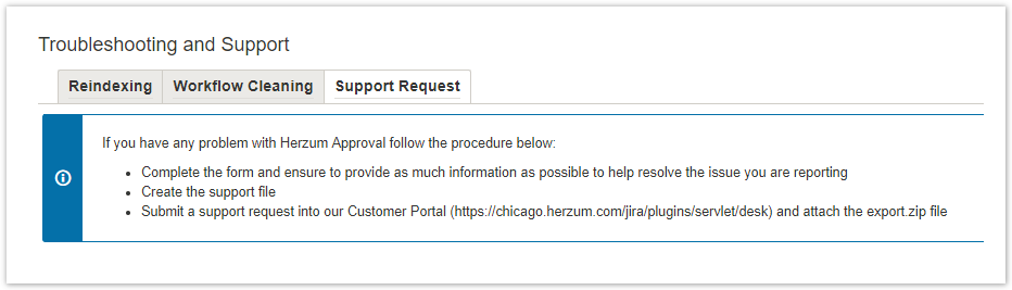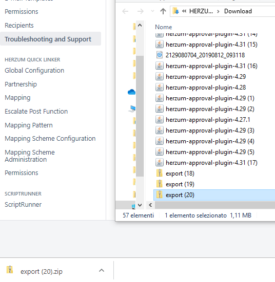 - download and attach the zip file to the ticket opened in the Herzum customer support portal.