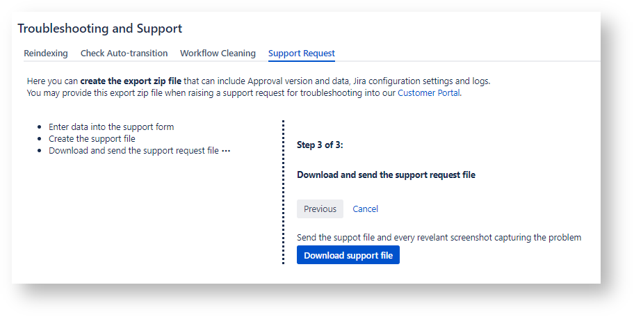 - navigate the Support Request tab on the Troubleshooting and Support screen
