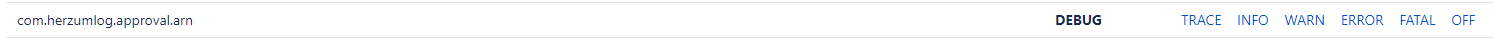 - Navigate on Default Loggers and click Configure to configure logging level for com.herzumlog.approval.arn package