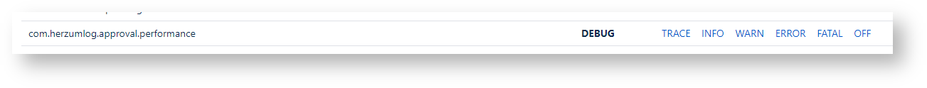 - Navigate on Default Loggers and click Configure to configure logging level for com.herzumlog.approval.performance package